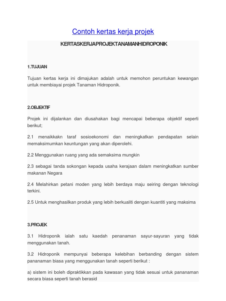 . 8102019 Kertas Kerja Cadangan Projek Pertanian Menggunakan Kaedah Hidroponik. Kertas Kerja Projek Tanaman Kontan Pdf Kerja kerja ini dikemukakan bagi mendapatkan kelulusan Ahli Lembaga Koperasi. Kertas Kerja Projek Tanaman Hidroponik Pdf Digunakan untuk menyuburkan tanaman o bahagian akuakultur.
